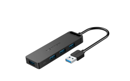 4-Port USB 3.0 Hub With Power Supply 0.15M Black