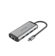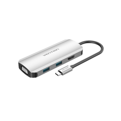 Type-C to HDMI/VGA/USB3.0/PD Converter 0.15M Gray Metal Type