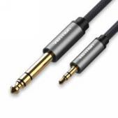 Hljóðsnúra, fléttað nælon, 3.5mm kall í 6.5mm kall